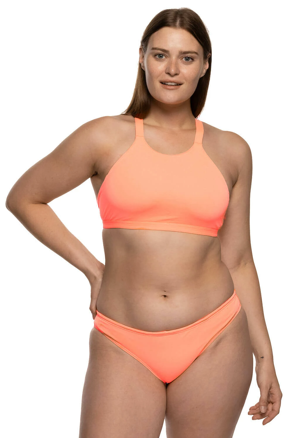 The Andy is a full coverage, high rise bikini swimsuit bottom that has a drawstring around the waist for superior hold. The Andy is perfect for lifeguards or anyone looking for a more conservative swim bottom.Â