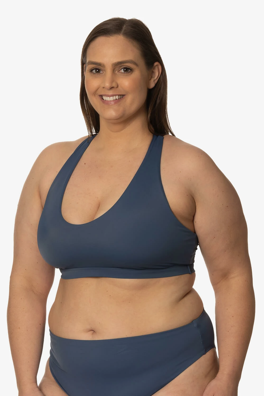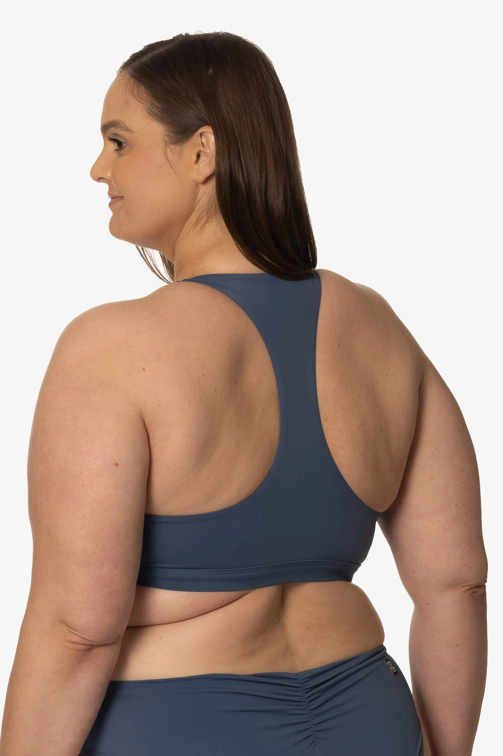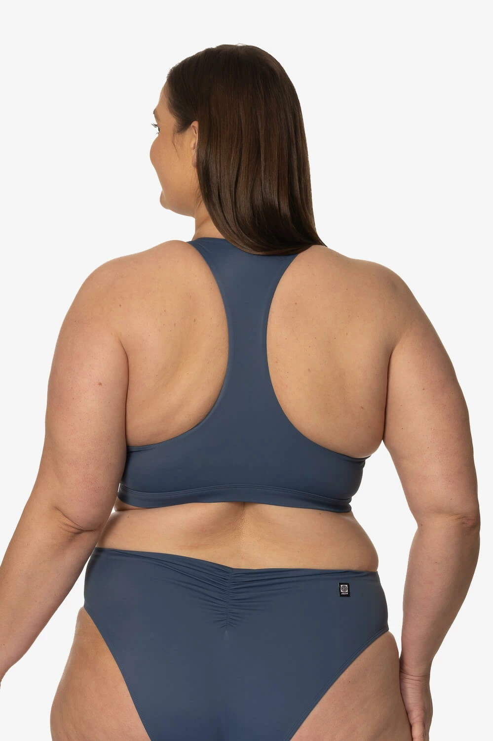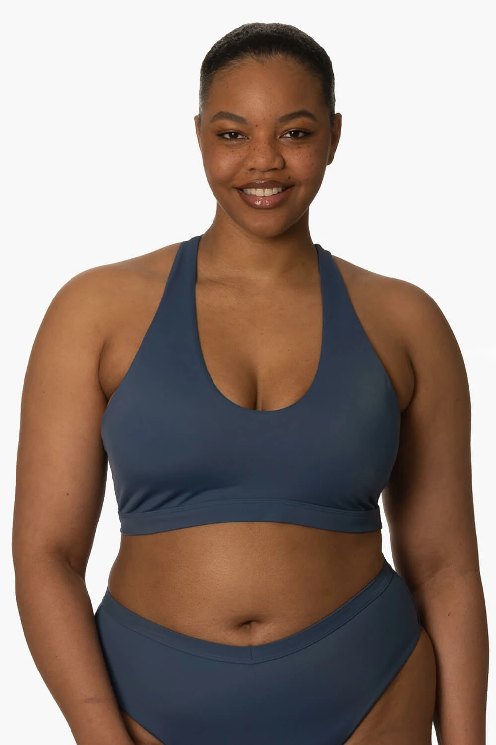 No one likes a funky tan line after an active day at the beach, so we’ve got your back with this slim racerback, deep scooped neck bikini top. For worry-free support, while you move, the Aster has 3/4″ straps to keep you active. Driven by performance, the Aster has been updated to have more coverage in the front to keep you covered no matter what! Designed with our buttery soft Recycled Sea-Flex fabric, you’ll want to wear this top all summer.