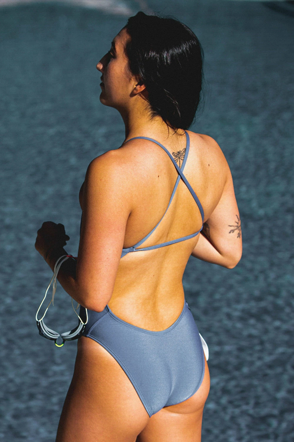 One of our bestselling styles, the Brandon is an adjustable fixed-back, full coverage one piece swimsuit with a criss-cross strap along the back. The strap is designed as one continuous band, which allows flexible distribution of tension along the shoulders and back.Â