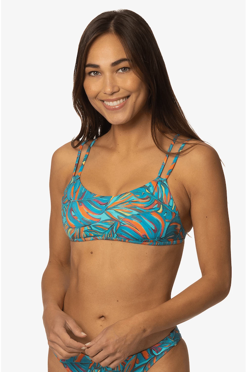 The Burleigh bikini top has a stylish scooped neck style front with tie straps – perfect for longboarding, paddling, or hanging at the beach. The Burleigh women’s bikini top features one-of-a-kind strap detail for minimal tan lines and optimal support and structure. Surf from sunrise to sunset and feel fully supported all day with the Burleigh silky smooth Recycled Sea-Flex fabric.