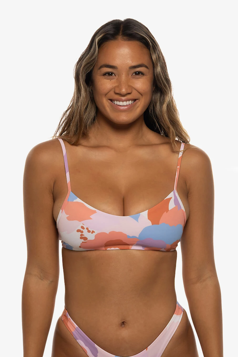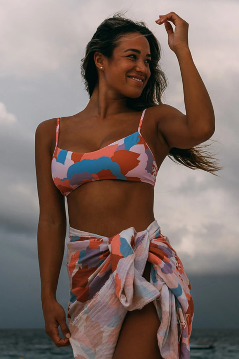 Eryn loves this surf tested, scoop-neck bikini top for getting out in the waves. Wear this surfing bikini top in the water or double it as a bra, thanks to clean finishes, adjustable straps, and our silky smooth Recycled Sea-Flex fabric. Get active and stay stylish during all the sunny beach days and big waves ahead.