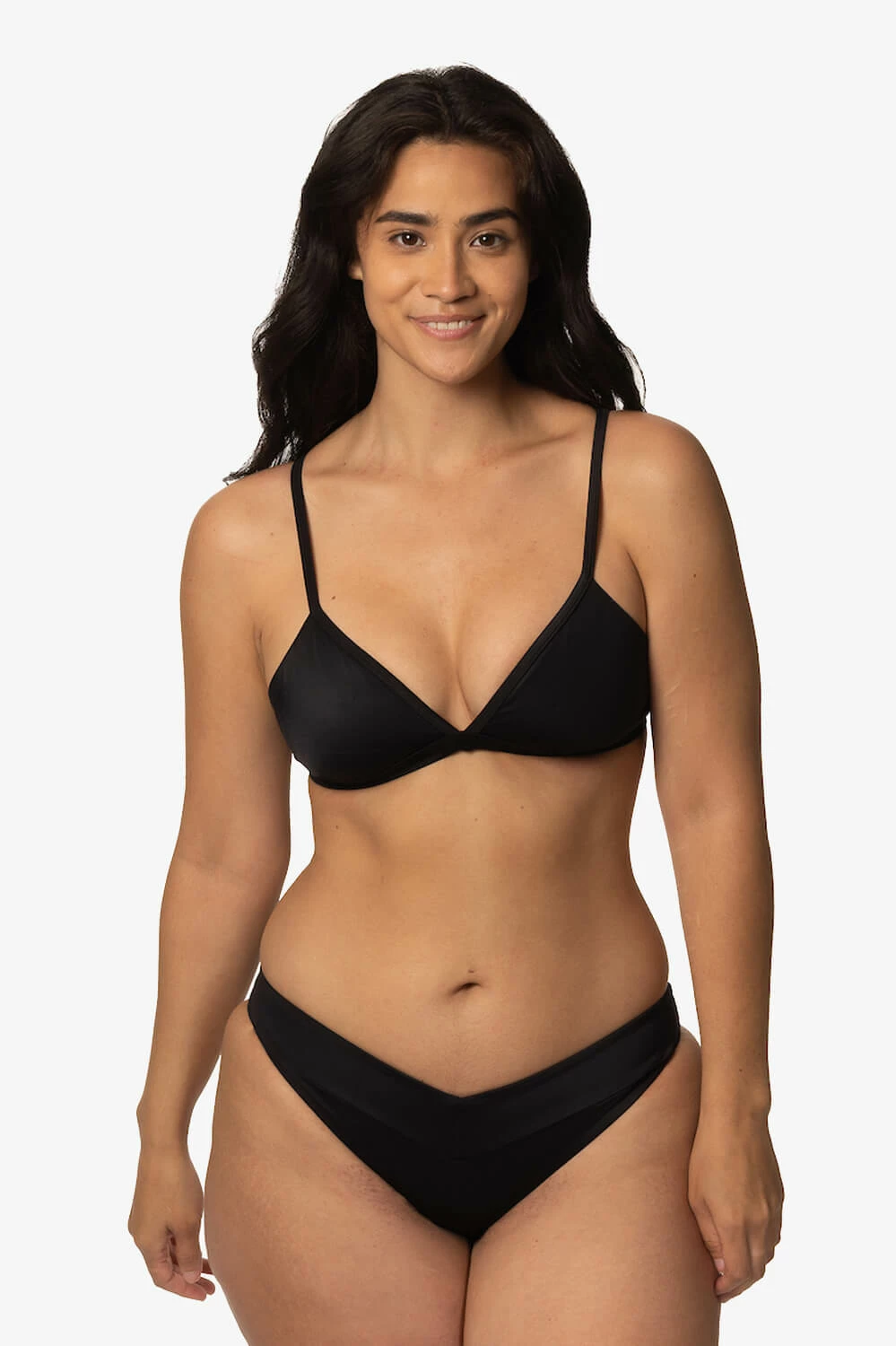 Soak up the sun and make sure you’re wearing the Kianda Bikini Bottom. Great for longboarding with your favorite girlfriends or a stroll down the sand. These women’s swim bikini bottoms offer medium coverage with a V-Shaped front detail and are a mid-rise cut.