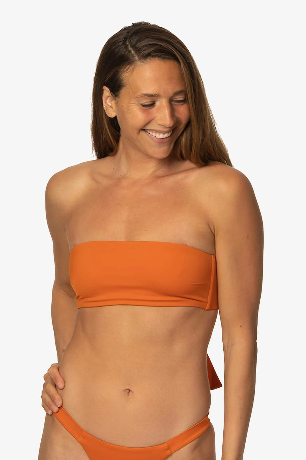 The perfect bandeau top comes with a bow. The Lacanau bikini top is a bandeau-style top with the perfect oversized bow in the back and a removable halter strap. This top can be styled so many different ways to fit your style. Thoughtfully designed in our Recycled Sea-Flex fabric – made from recycled fishing nets and other discarded nylon.