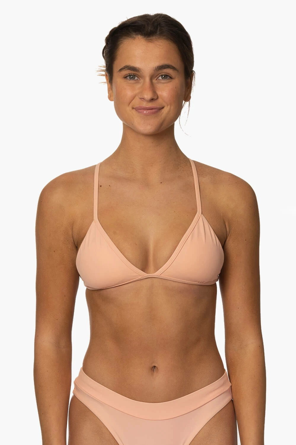 Inspired by our bestselling Triangle top, the Lily is perfect for a day of surfing, paddling, ocean activities, or relaxing on the shore. The Lily provides a more open back and thinner straps than our regular Triangle top and also includes a 1/4” gap between triangles for optimal tan lines.
