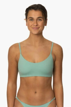 The Mia women’s bikini top is a surf-tested, scoop-neck bikini top perfect for getting out in the waves. Wear this surfing bikini top in the water or double it as a bra, thanks to clean finishes, and adjustable straps. Get active and stay stylish during all the sunny beach days and big waves ahead.