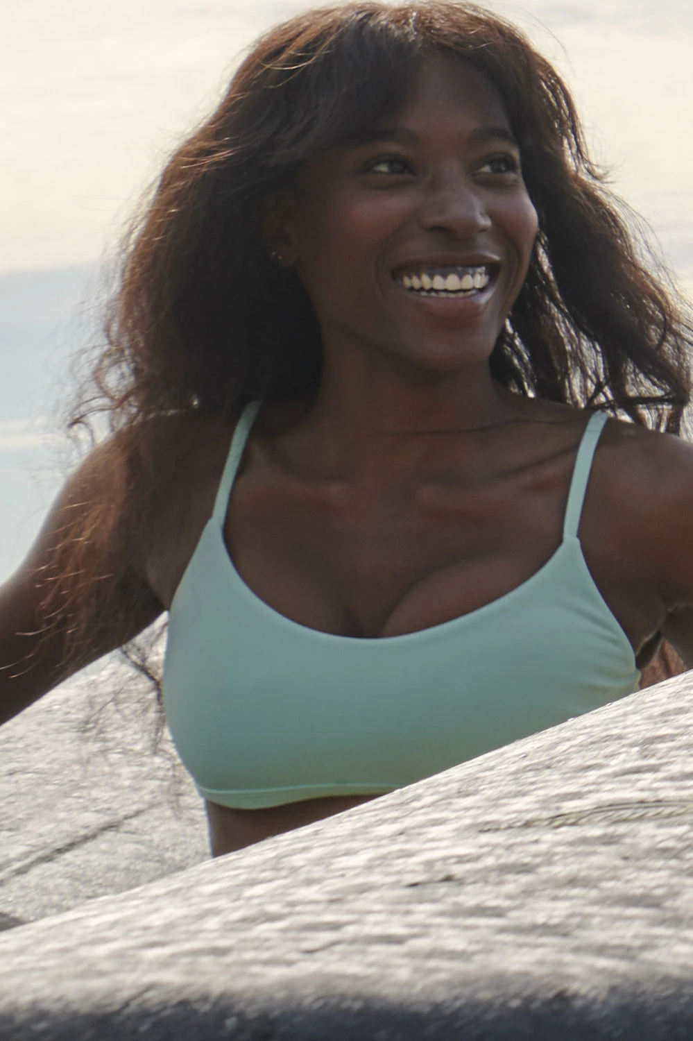 The Mia women’s bikini top is a surf-tested, scoop-neck bikini top perfect for getting out in the waves. Wear this surfing bikini top in the water or double it as a bra, thanks to clean finishes, and adjustable straps. Get active and stay stylish during all the sunny beach days and big waves ahead.