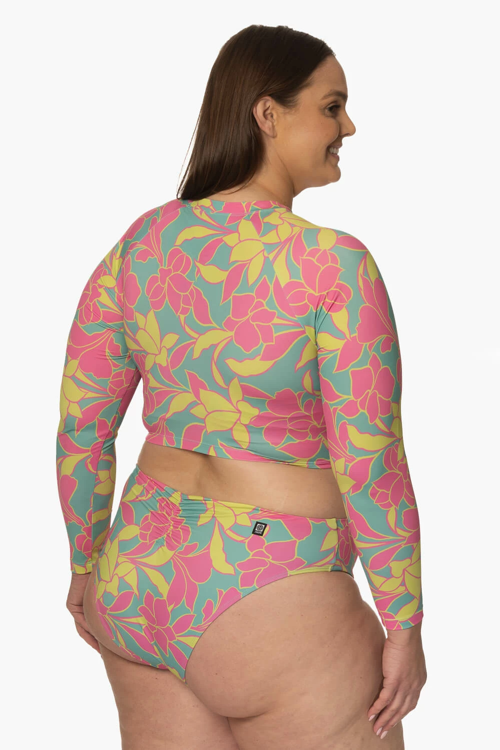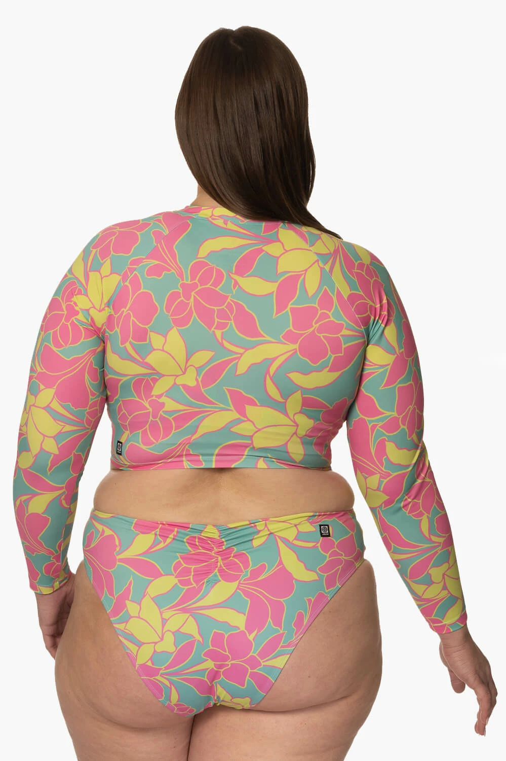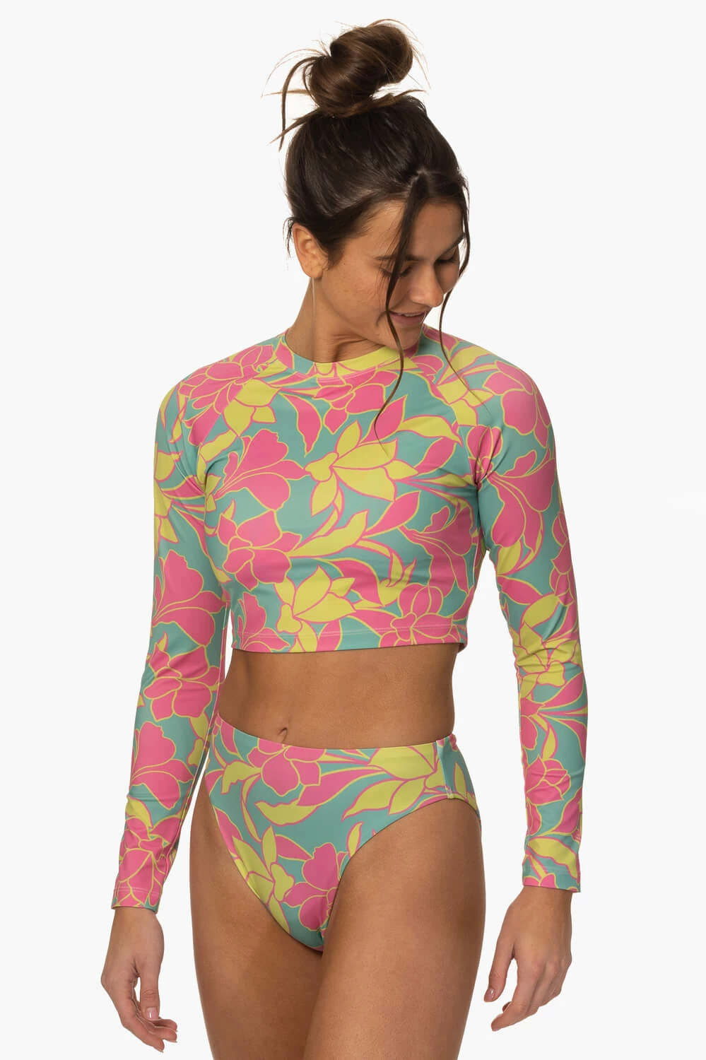 Keeping your arms, shoulders, and chest protected from UV rays, Moana is meant to be used in and out of the water with its quick-drying and soft-to-the-touch Recycled Sea-Flex Fabric, made out of recycled fishing nets and other discarded nylon. Flattering and form-fitting, the Moana pairs beautifully over any bikini top. This cropped long-sleeve rash guard is a surfer’s dream.