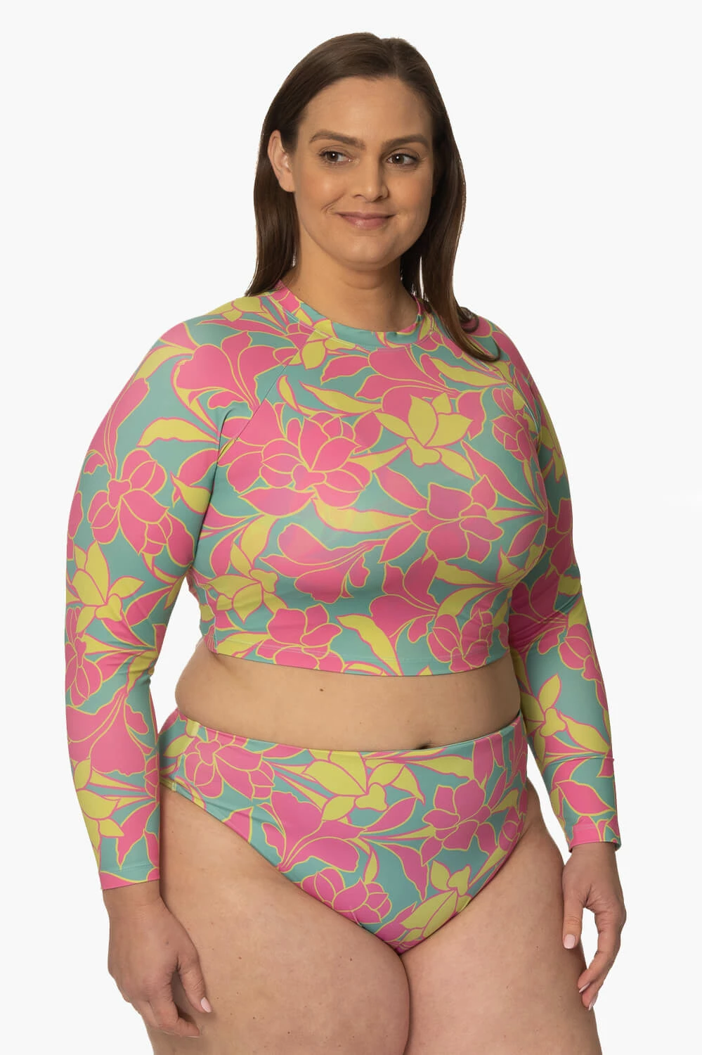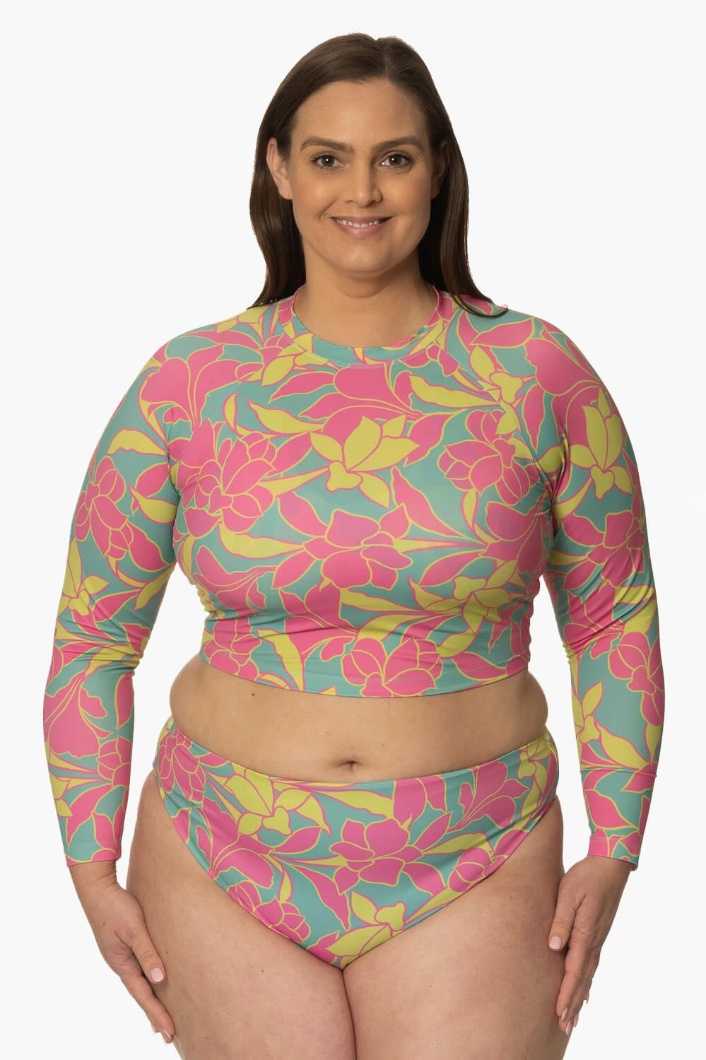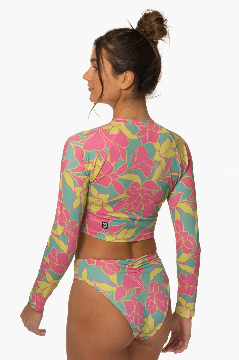 Keeping your arms, shoulders, and chest protected from UV rays, Moana is meant to be used in and out of the water with its quick-drying and soft-to-the-touch Recycled Sea-Flex Fabric, made out of recycled fishing nets and other discarded nylon. Flattering and form-fitting, the Moana pairs beautifully over any bikini top. This cropped long-sleeve rash guard is a surfer’s dream.