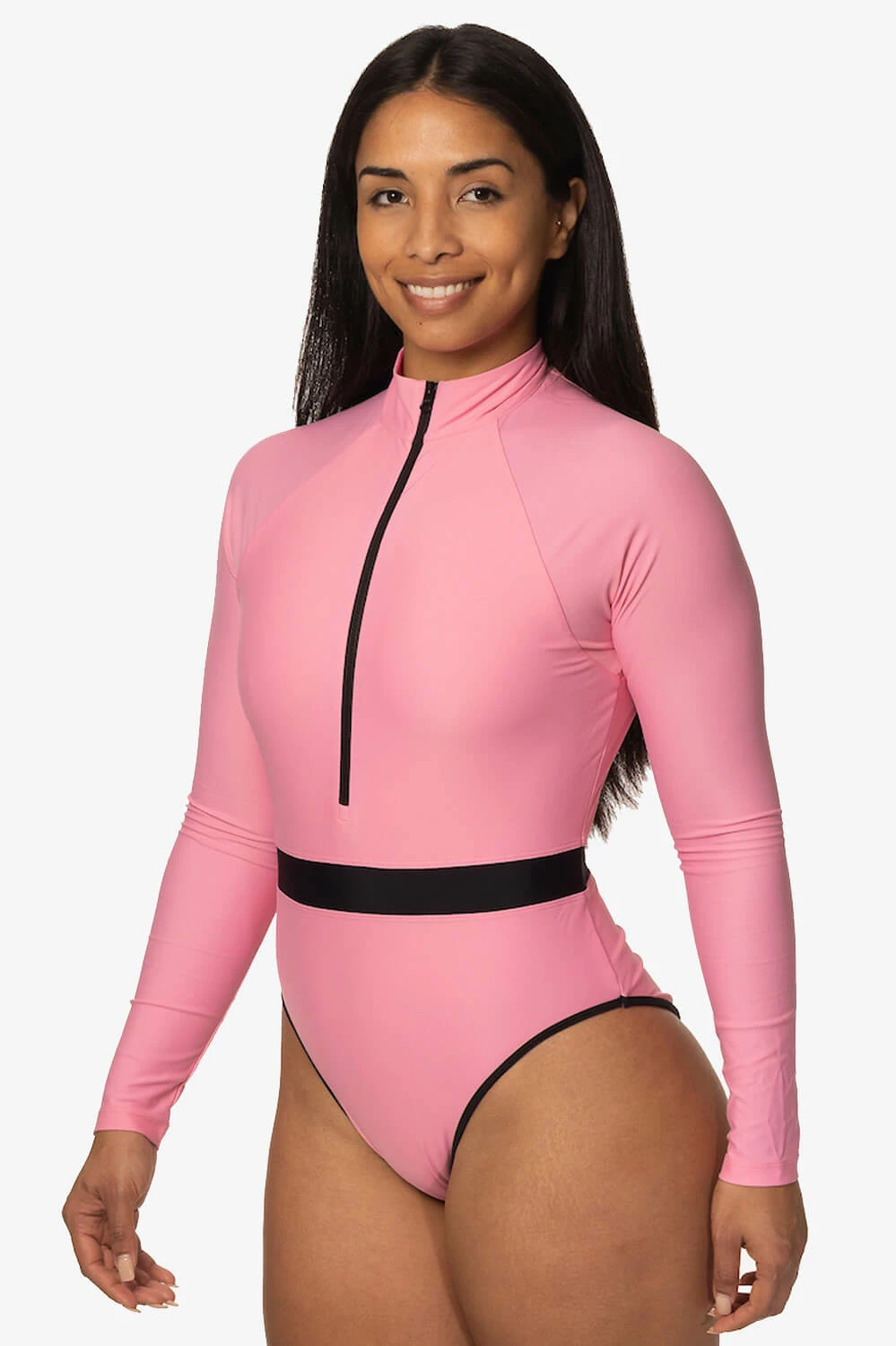 The Nazare women’s long sleeve surf swimsuit is made for playing in the saltwater all day long. The performance-driven design is made with a stylish semi-exposed zipper to prevent rubbing and a raglan sleeve for ease of motion while paddling. With a stylish french cut style, this surf suit is the perfect amount of cheekiness mixed with function. Charge the surf or go paddling, this suit can keep up with any challenge. Thoughtfully designed with our stylish yet athletic Recycled Sea-Flex fabric.