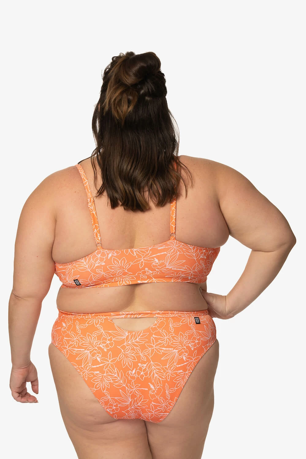 The beach is calling and Nora is answering. Nora is the perfect high-waisted surfing bikini bottom. Specifically constructed with a clean finish around the legs and detailed cutout. These bikini bottoms will stay put no matter the conditions. Made with our stylish yet athletic recycled Sea-flex fabric.