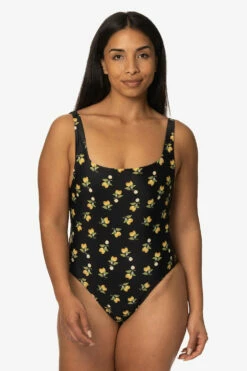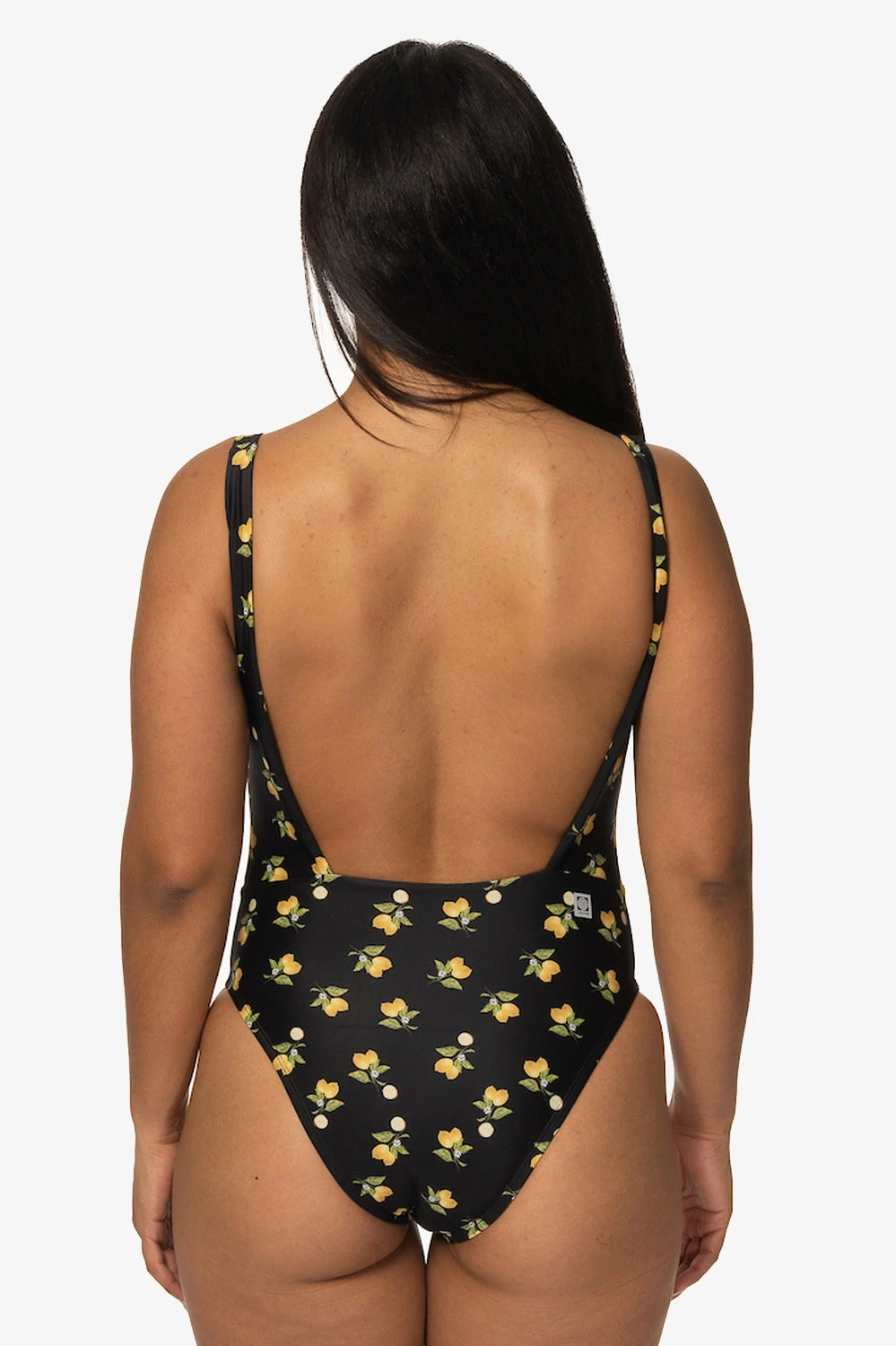 The perfect surf onesie does exist, and the Nova Scotia surf one piece is it. This women’s one-piece swimsuit features a square neck, an open back, a built-in self-bra, and fixed-back straps for ultimate support. For those who like medium coverage, this one piece is perfect for you. This suit keeps you strapped in and ready to go wherever the waves may take you. Proudly made with our stylish yet athletic Recycled Sea-Flex fabric.