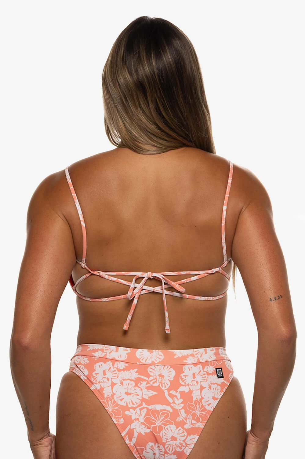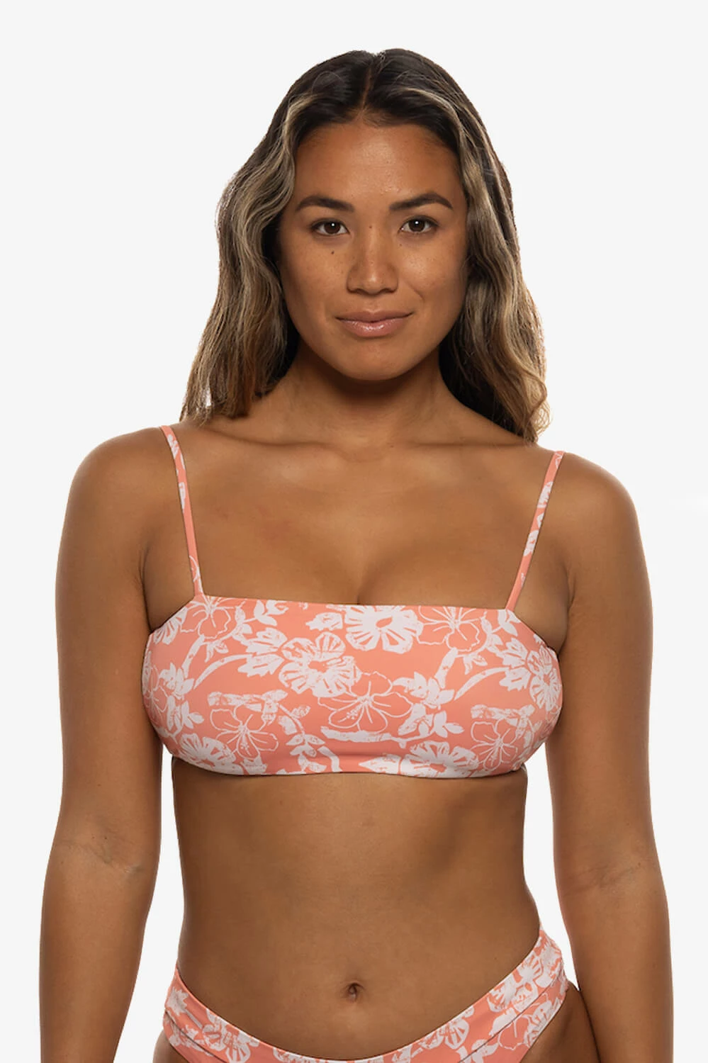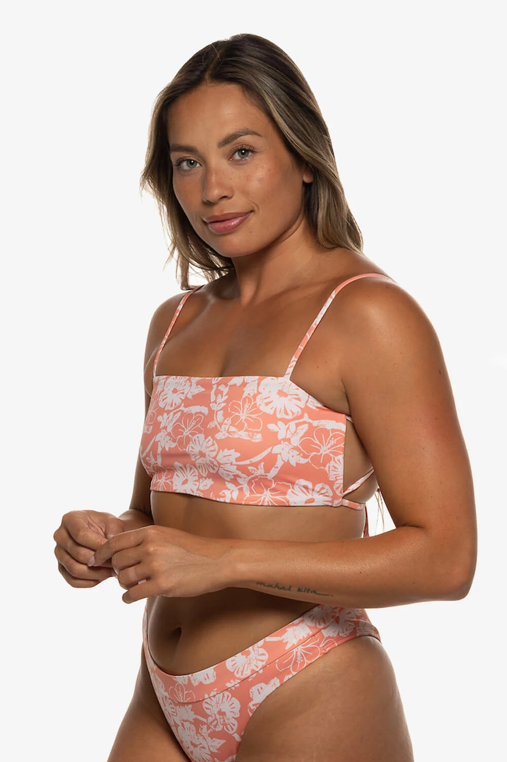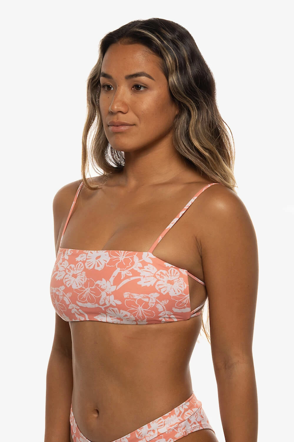 The Sina bikini top has a gorgeous bandeau style front with tie straps – perfect for longboarding, paddling, or hanging at the beach. Part of the JOLYN x Eryn Krouse Collection, the Sina features one of a kind geometric cut out straps and boning under the arm for optimal support and structure. Surf from sunrise to sunset and feel fully supported all day with the Sina’s silky smooth Recycled Sea-Flex fabric.