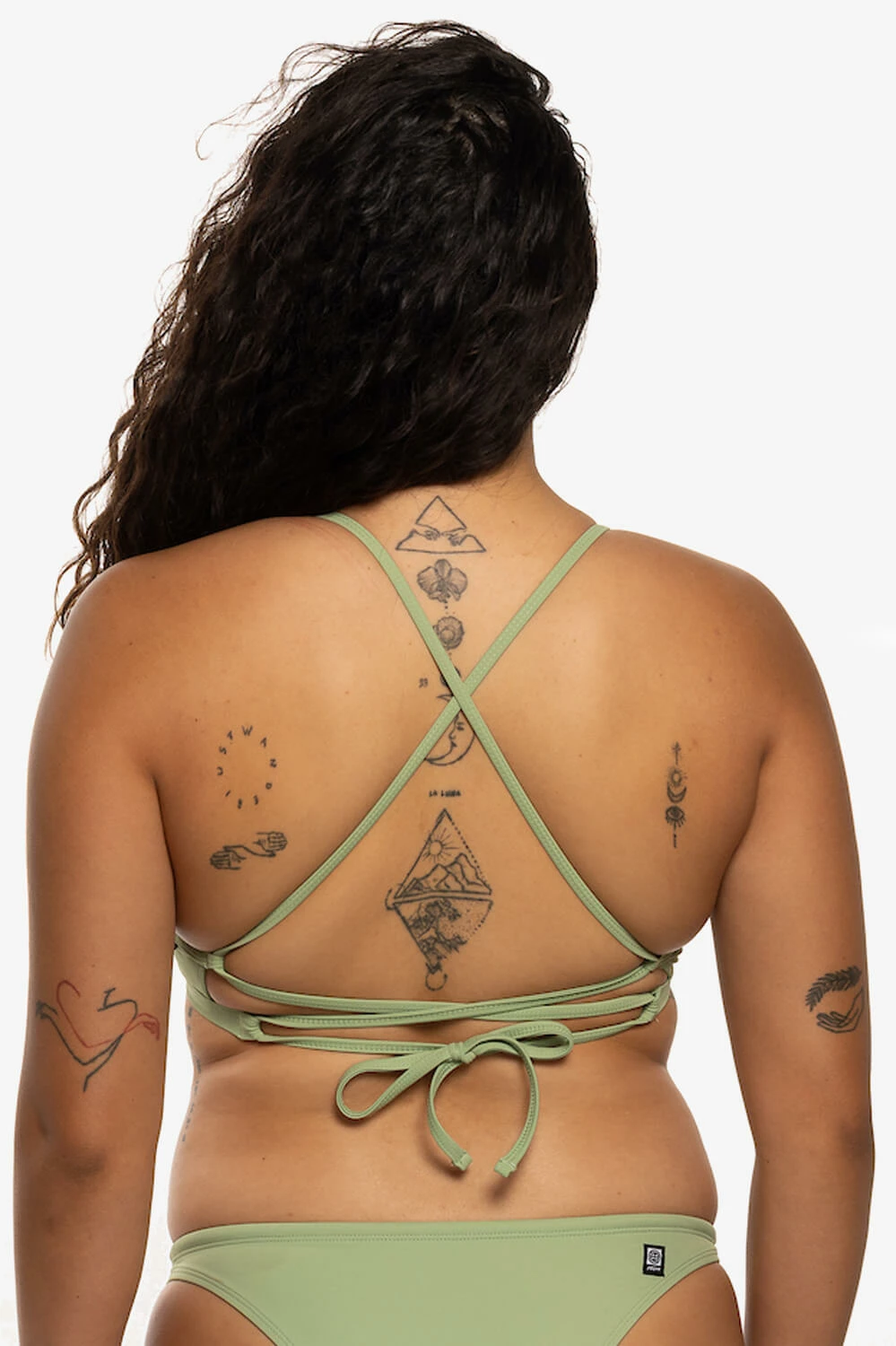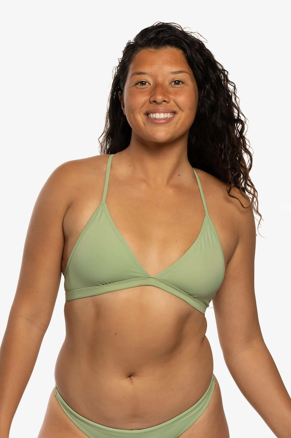 A triangle bikini top engineered to offer added support and surfability, the Teresa is a great swimsuit top for those with a larger bust or who prefer more coverage. With a taller triangle and 3/4″ wide fixed under-band, the Theresa high point triangle bikini top is great for medium to high impact activities. Includes corset-style lacing for the perfect adjustable and stylish fit. Proudly made with our stylish yet athletic Recycled Sea-Flex fabric.