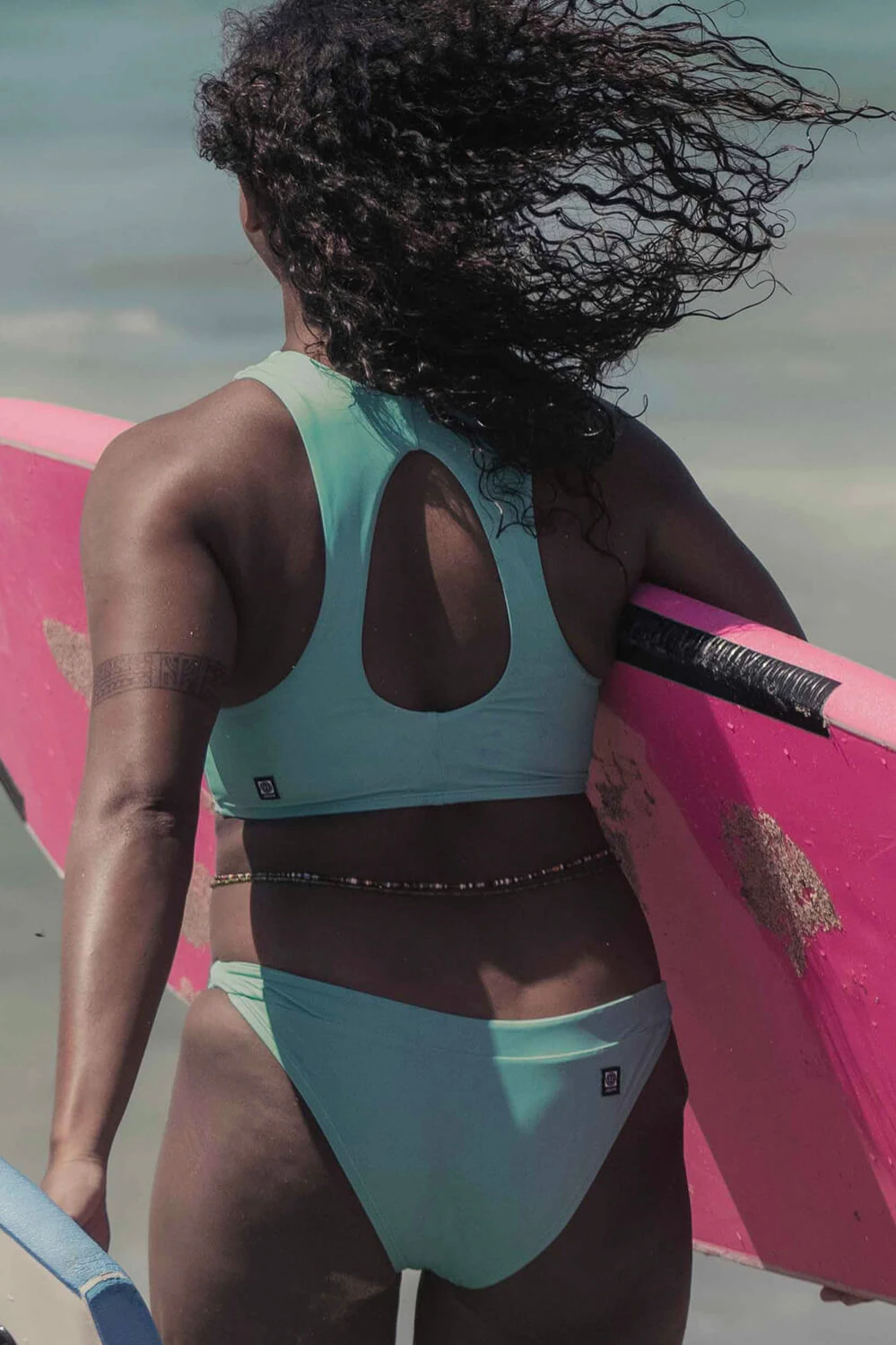 We designed a medium coverage bikini bottom that will perform just as hard as you do. Designed with a little flair, these contrasting bikini bottoms will turn heads as you’re charging any wave or cooling off on the beach. Great for those who want slimmer coverage without compromising durability. Proudly made with our stylish yet athletic Recycled Sea-Flex fabric.