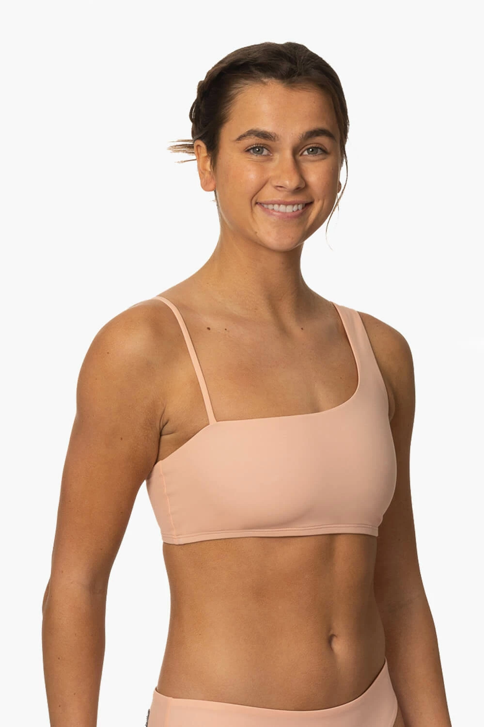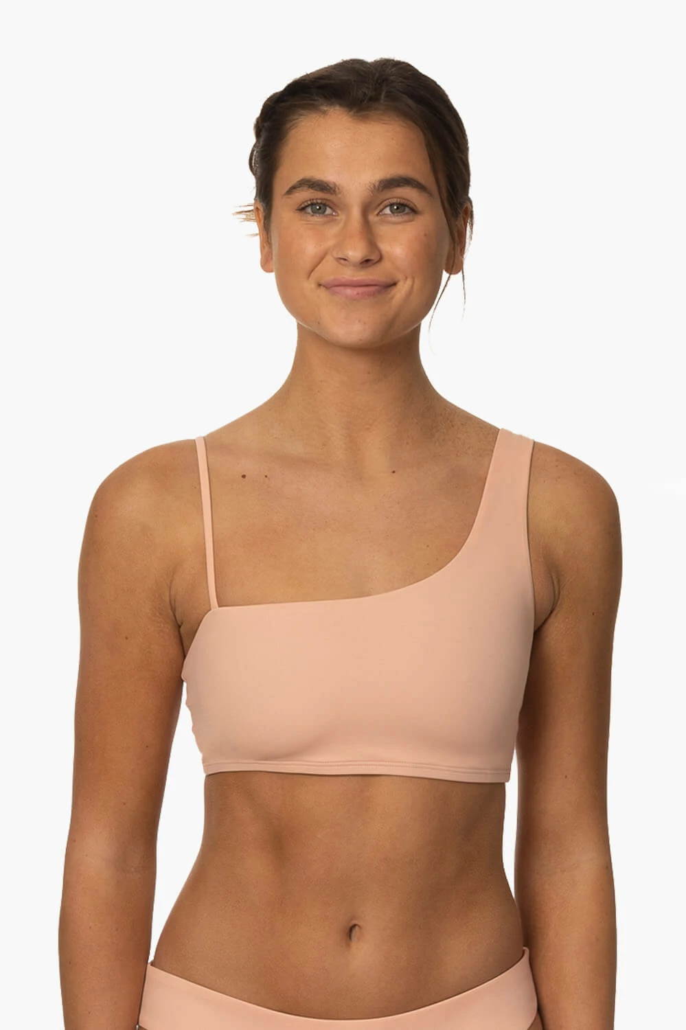 Coming in hot, the Willa women’s bikini top is perfect for the surfer who wants a little flair. This bikini top can hold up to any challenge and look good doing it with its asymmetrical straps and full coverage front. Wear this surfing bikini top in the water or double it as a bra, thanks to clean finishes, and adjustable straps. Get active and stay stylish during all the sunny beach days and big waves ahead.